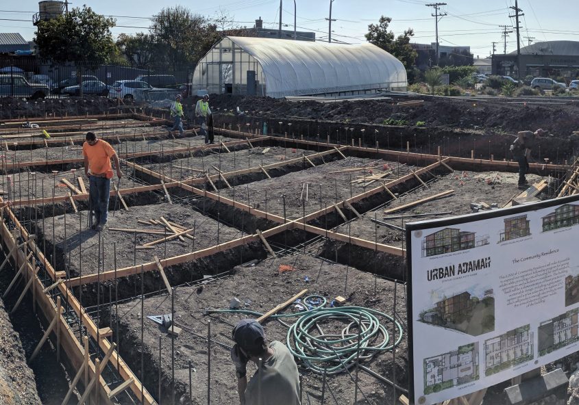 Foundations are being formed for this Prefab building that will house the future generations of Urban Farmers. In parallel to this on-site construction the 16 building modules that will comprise the 3-story building are being fabricated in the Pre-fab factory to then be shipped to the site… very exciting !